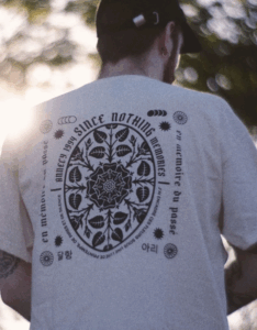 Nos designs mettent en avant nos interrogations sur place de l'émerveillement dans nos vies, notre quotidien. Afin de laisser notre empreinte manuelle sur nos créations nos tee-shirts sont imprimés en sérigraphie, à la main et à la commande.